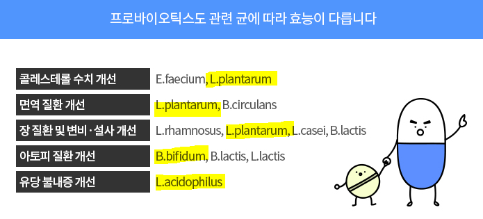 락토바실러스 플란타럼은 콜레스테롤 수치 개선, 면역 질환 개선에 효능이 있습니다.
