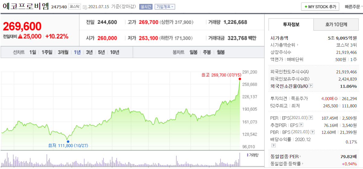 양극재 | 에코프로비엠 | 5조 9000억 |