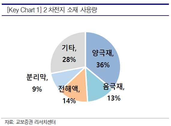 양극재는 리튬이온 소스로 배터리의 용량과 평균 전압을 결정하고, 음극재는 충전속도와 수명을 결정하는데, 양극에서 나온 리튬이온을 저장했다가 방출하면서 외부회로를 통해 전류를 흐르게 하는 역할을 한다
