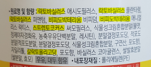 결국 유산균이 프로바이오틱스와 유산균 먹이인 프리바이오틱스들이 들어가 있다고 보시면 됩니다.
