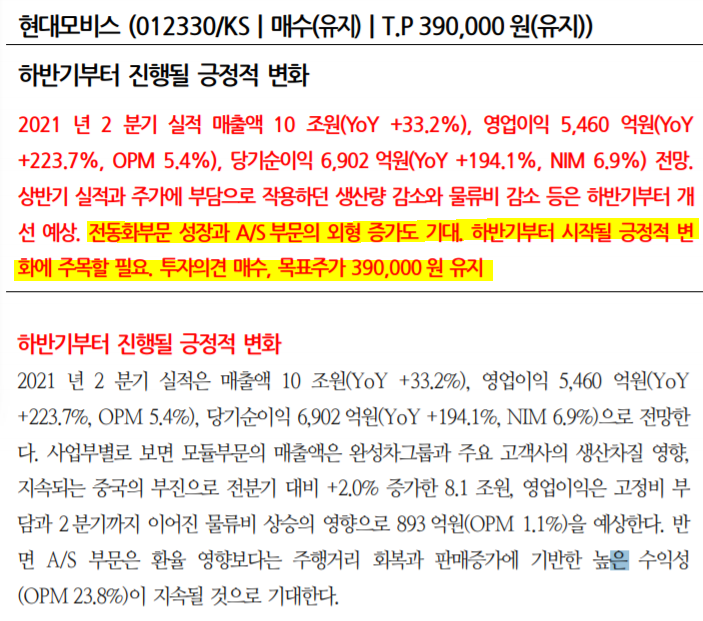하반기가 되었으니 현대모비스 상황을 다시 점검한다...