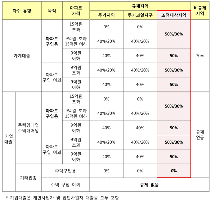 - 대출규제가 강화되어 규제지역에서는 대출 LTV 규제가 개인이나, 임대업이나, 매매업이나 동일하다