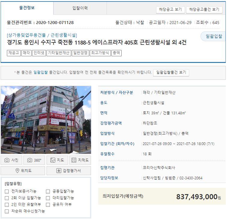 최저입찰가가 8억대로 떨어져서 매력적인 가격이 된 것 같음...