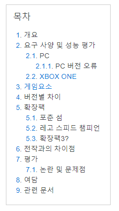 나무위키의 목차를 살펴보면 바로 이해가 가죠?