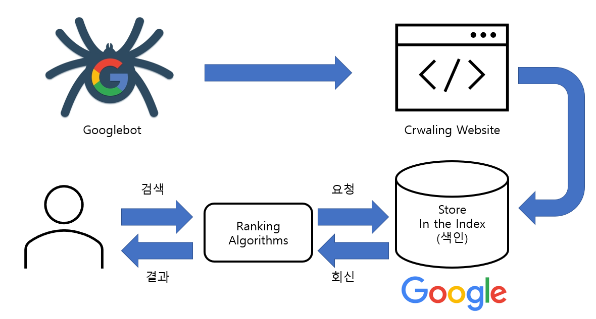 수십억 개의 페이지가 생성되는데 구글이 새롭게 생성된 페이지를 인식하기 위해 구글은 페이지를 가져와서 읽고 구글 자체 색인에 추가하면 색인이 생성됩니다.