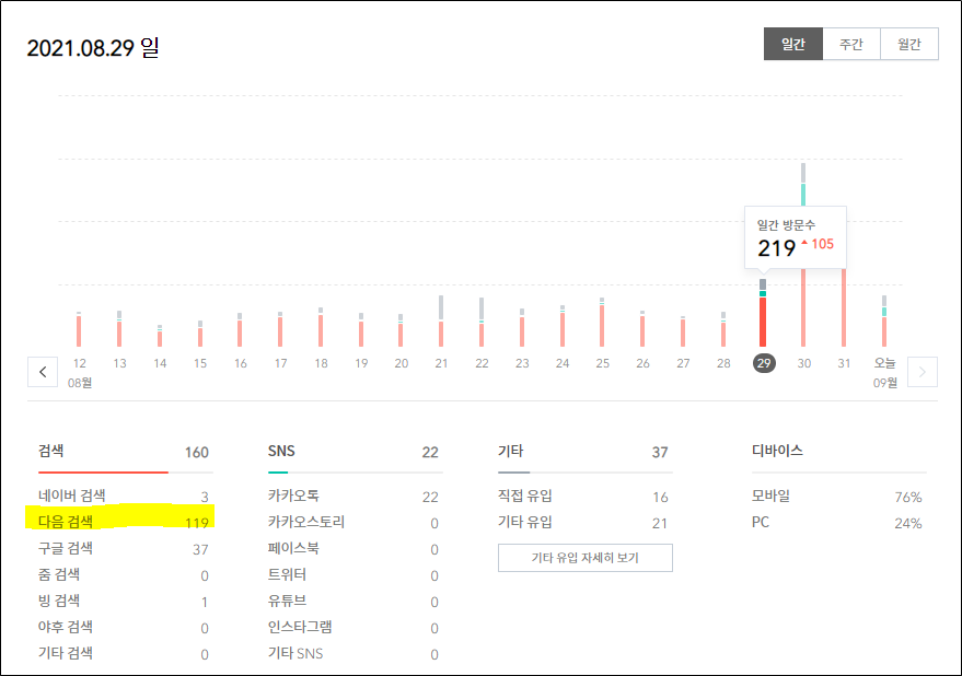 갑자기 9월 1일부터 다음에서 블로그 유입이 되지 않는 것이 확인되었다.
