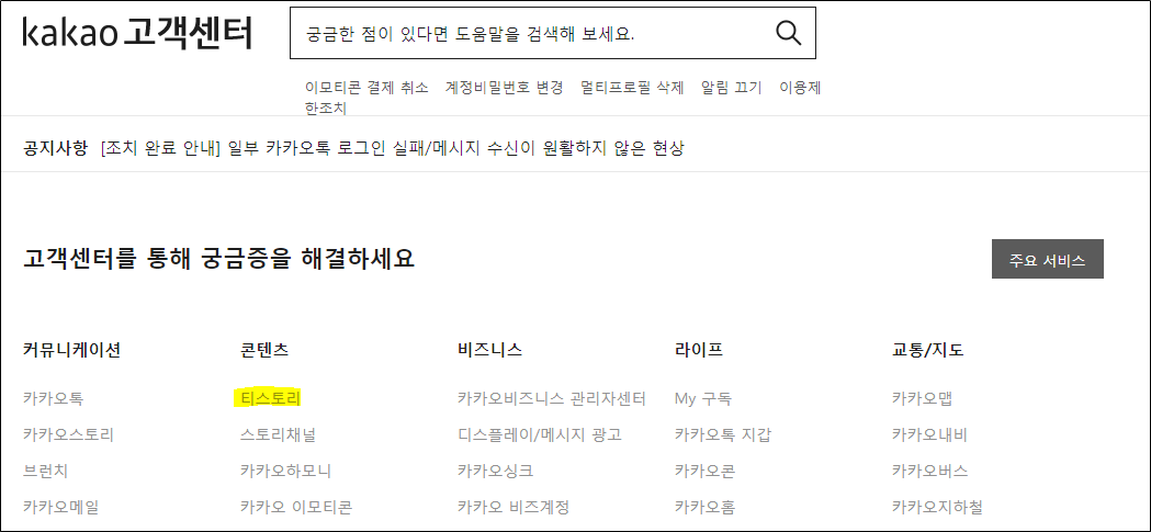 카카오 고객센터를 통해 각 서비스 도움말을 확인해보세요.