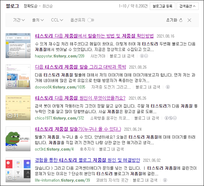 티스토리 블로그도 다음에서 저품질에 걸릴 수 있다는 건가?