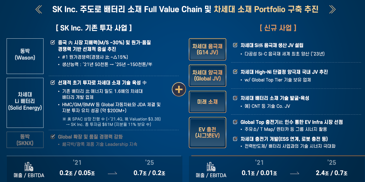 9월 15일에 SK에서 IR을 했는데 배터리 소재 투자계획을 발표했음.