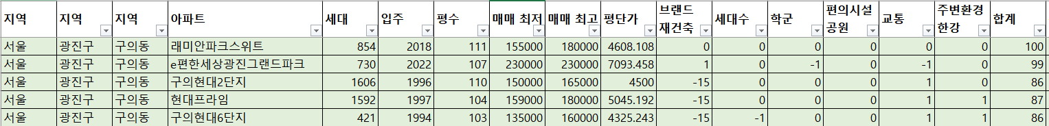 구의동에 300세대가 넘는 아파트가 5개가 있음.