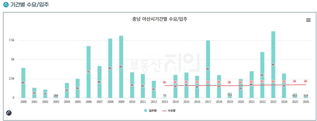 아산은 24년까지 새 아파트 입주가 많아서 전세 공급이 수요를 초과할 것 같음