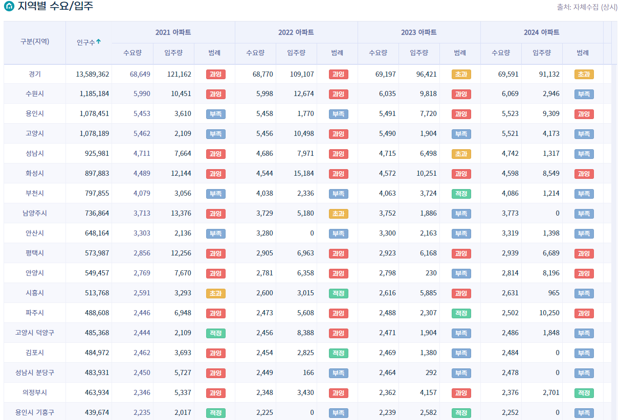 2) 입주 물량이 몰려있으면 실거주를 하던, 임차인이 들어와 살아야 하니까, 입주물량이 많은 지역에 전입인구가 많아질 것으로 예상됨..(너무나 당연한 얘기)