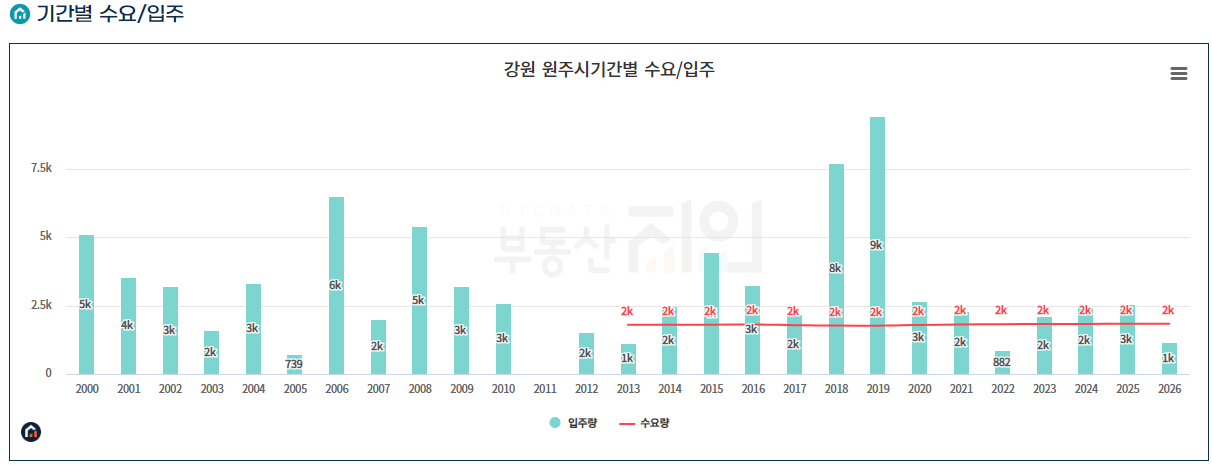 원주는 25년까지 새 아파트가 꾸준히 입주하지만 과공급은 아닌 듯..
