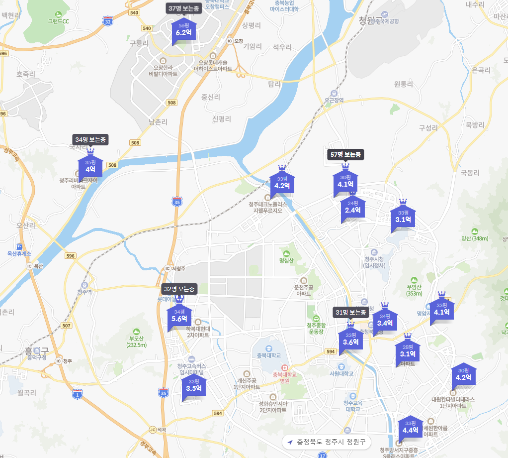 청주 청원구, 서원구가 아파트 공급이 부족함.