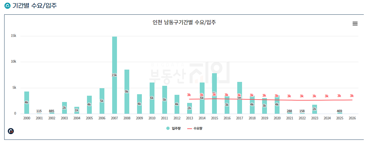 미추홀구에도 25년까지 새 아파트 입주가 많아서 전세 공급이 수요를 초과할 것 같음