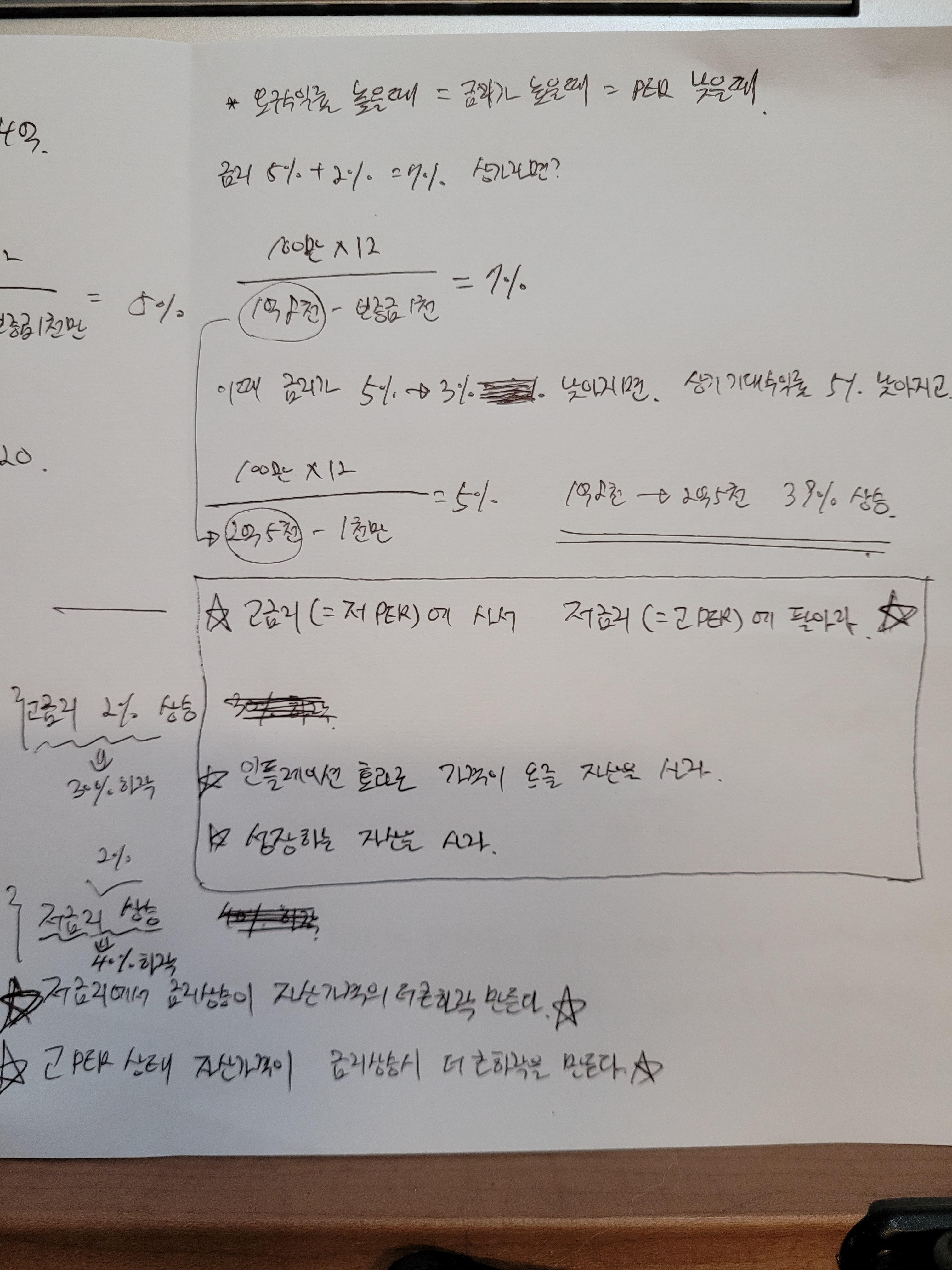 3) 기준금리가 오른다 = 요구수익률이 오른다 = PER 하락 = 자산 가격 하락