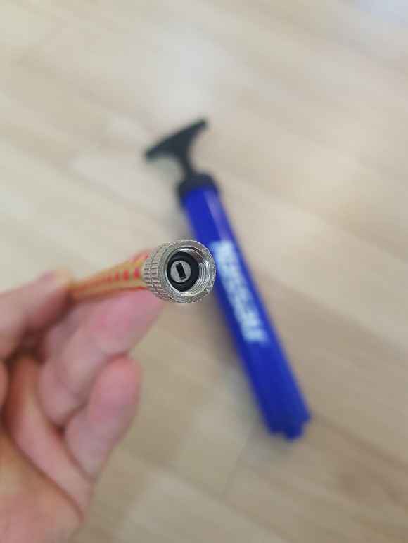 에어펌프와 호스 , 바늘을 연결하고 농구공에 바람을 넣어봤는데요.