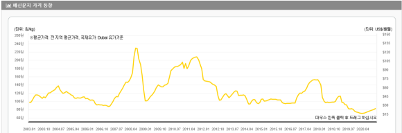 2020년 12월 폐골판지 가격 73원/Kg, 73000원/1000Kg