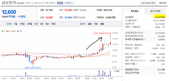 삼보판지 주가는 현재가 최고가