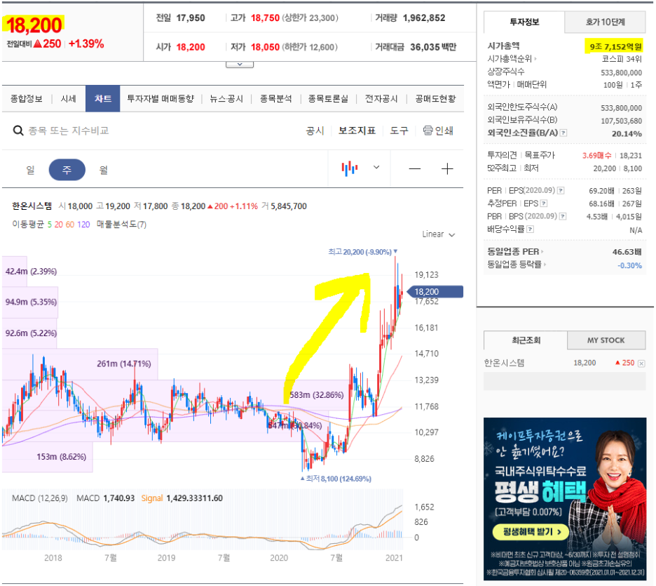 1월 27일 한온시스템 주가는 18200원입니다.