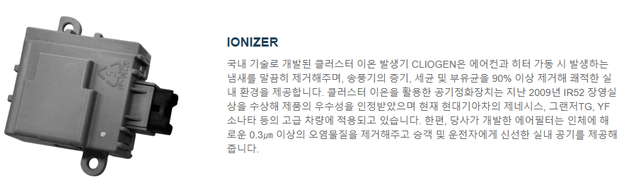 단순하게 차 안을 따뜻하게 또는 시원하게 해주는 것만이 아니라 공기의 습도, 청정도, 흐름을 유지시켜 주는 시스템 입니다.