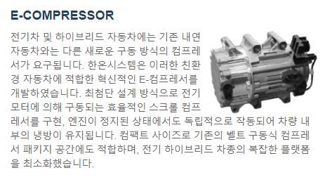 전기차에서는 엔진이 없기 때문에 아래와 그림과 같은 새로운 방식의 컴프레서를 개발하였습니다.