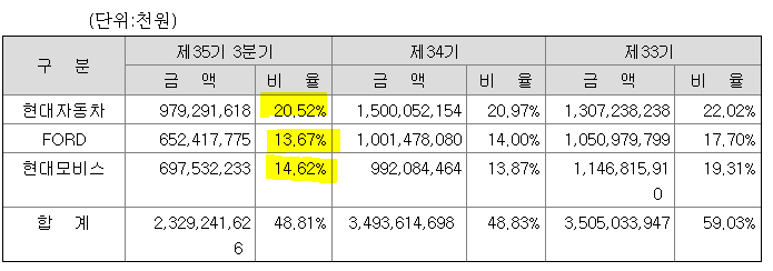 한온시스템의 공조제품 매출의 고객사 비중은 현대차 매출이 가장 많습니다.