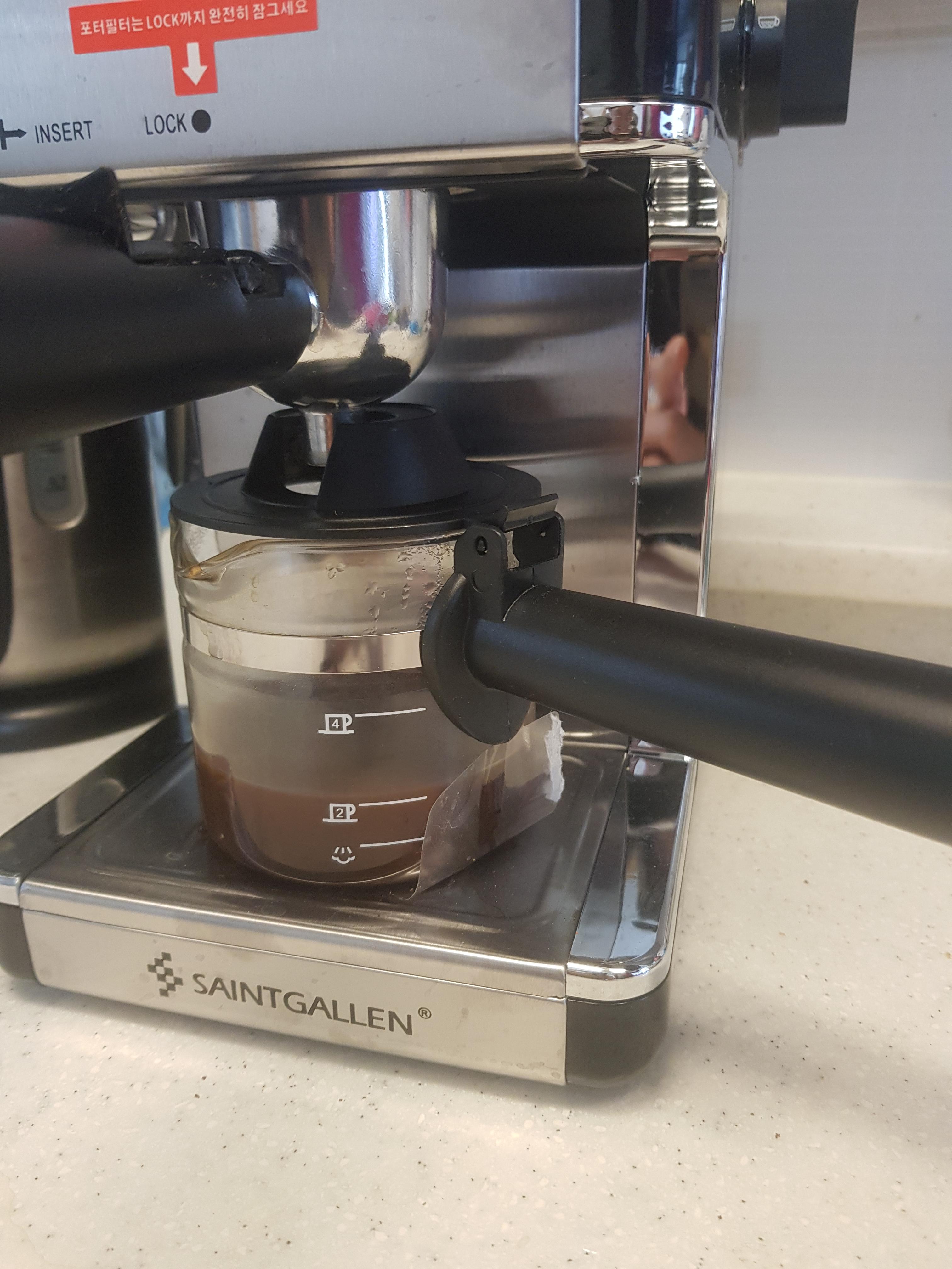 마트에서 세인트갈렌 에스프레소 커피머신을 우연히 보게되서 생각보다 저렴한 가격에 혹해서 바로 겟했습니다.