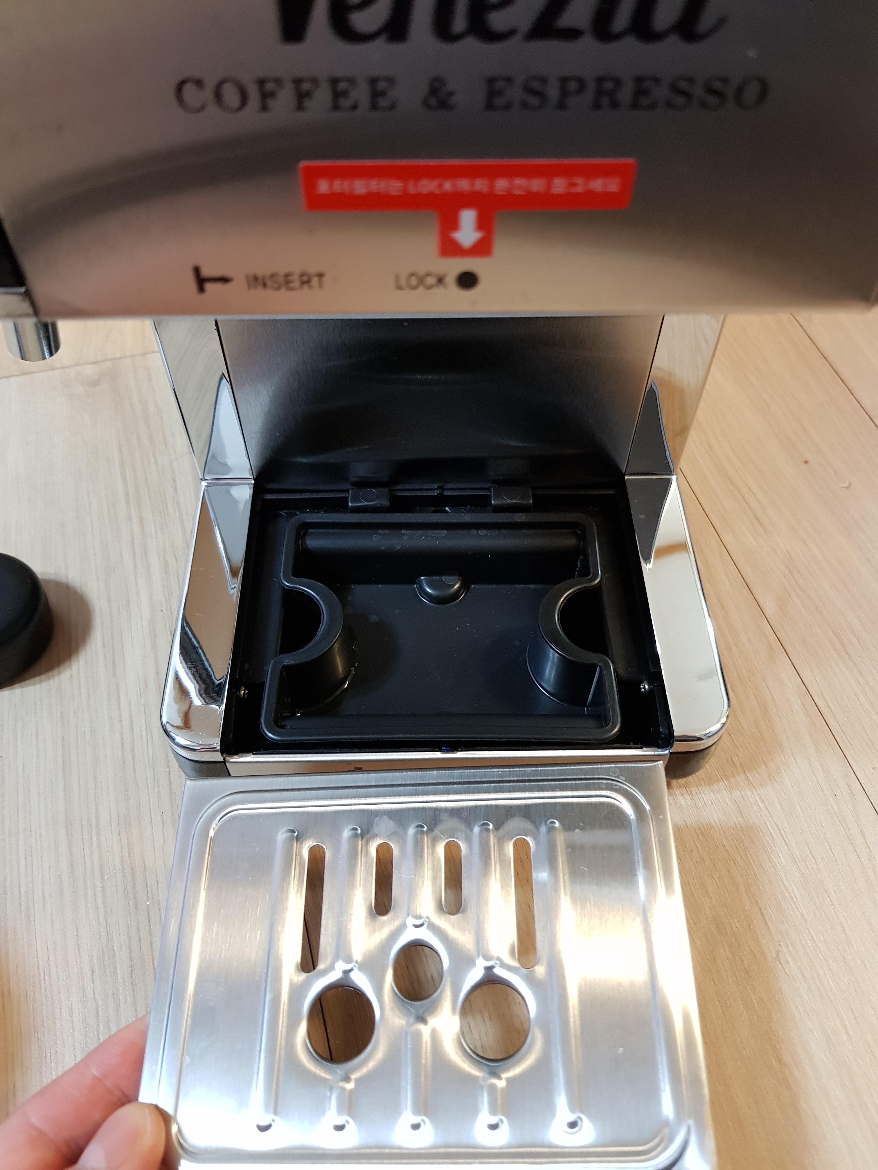 머신 본체 하단에는 주전차 거치대와 물받이가 있구요.