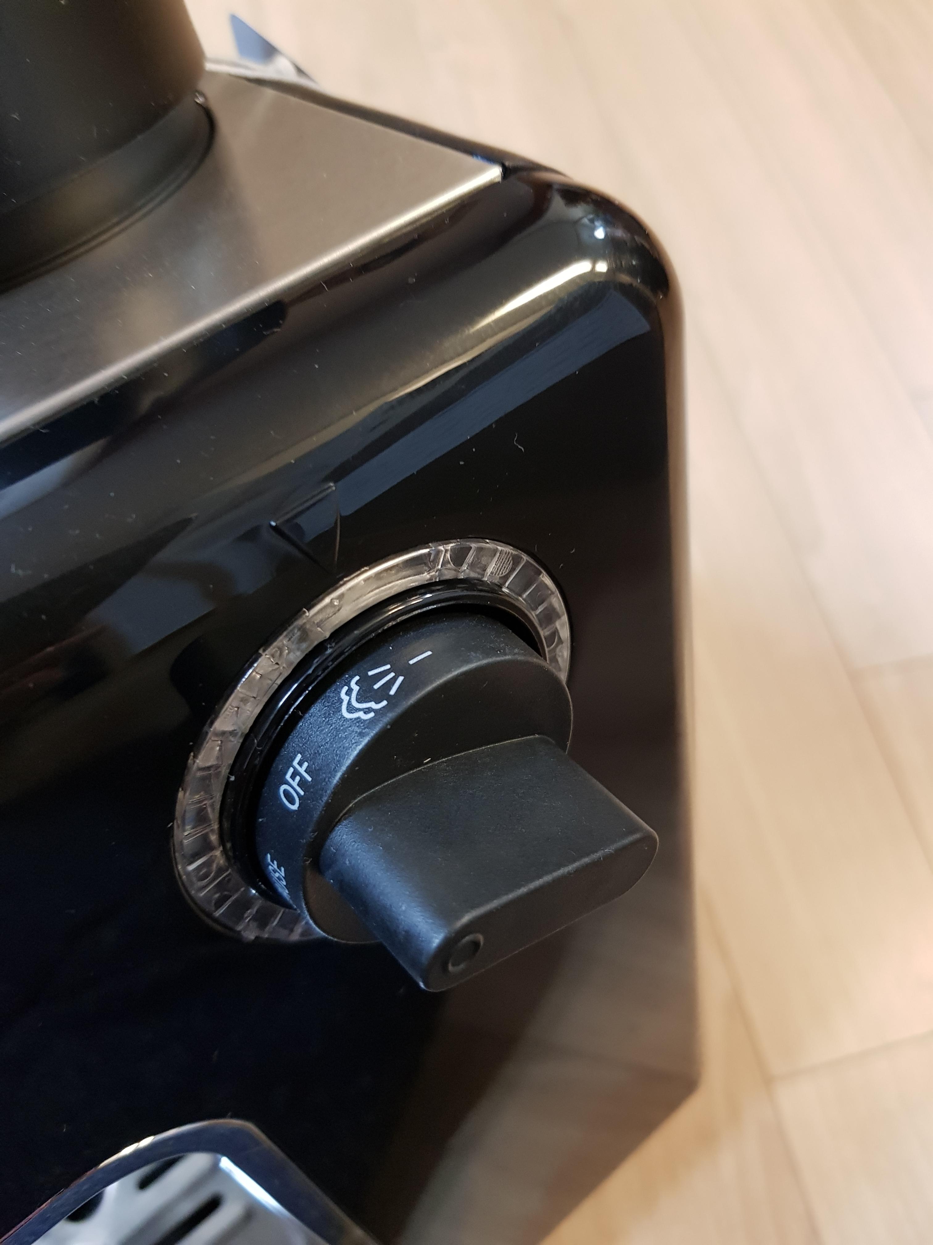 OFF 위치에 있는 다이얼 작동 스위치를 바깥쪽으로 돌려주면 커피추출이 됩니다.