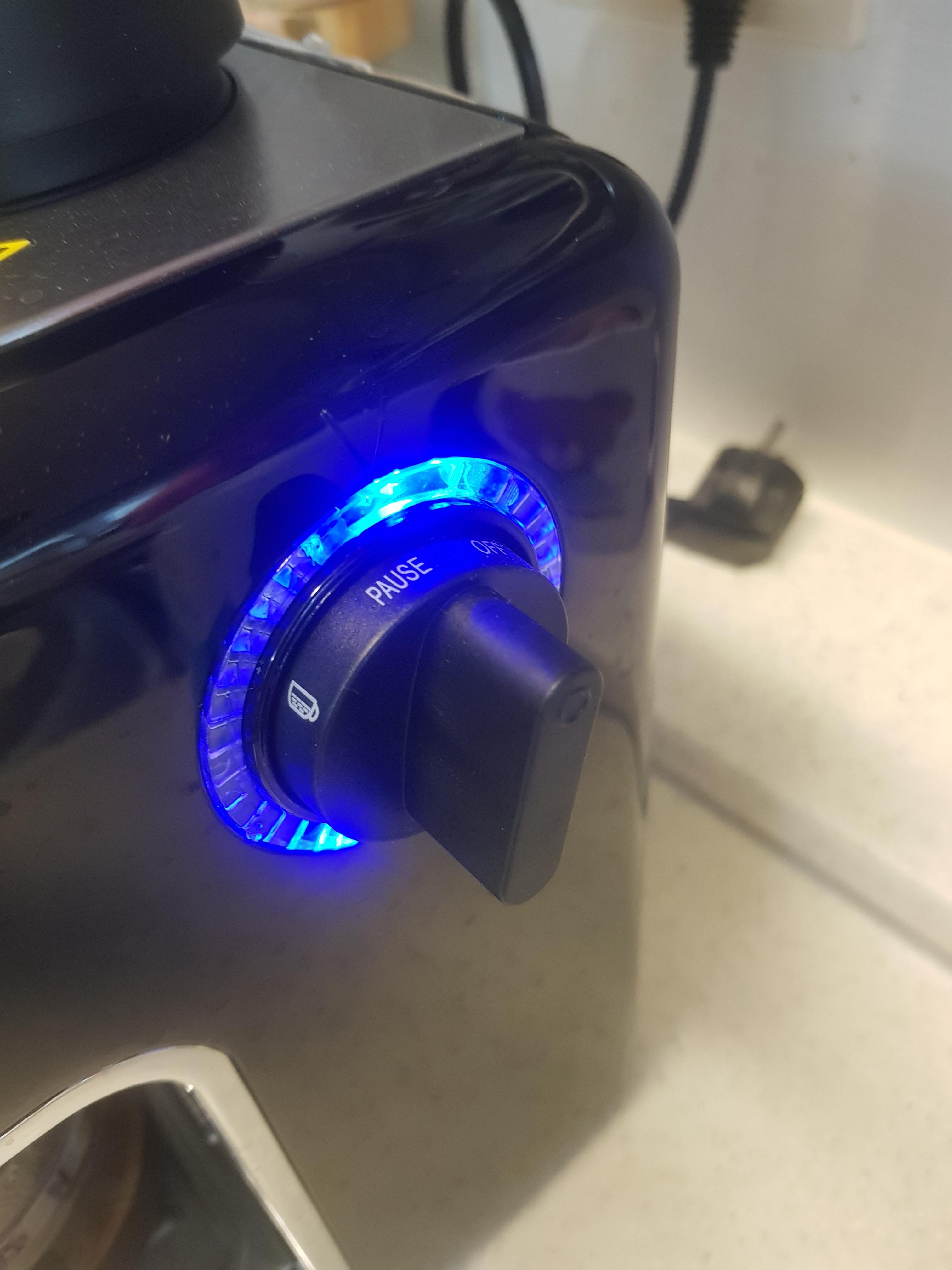 OFF 위치에 있는 다이얼 작동 스위치를 바깥쪽으로 돌려주면 커피추출이 됩니다.