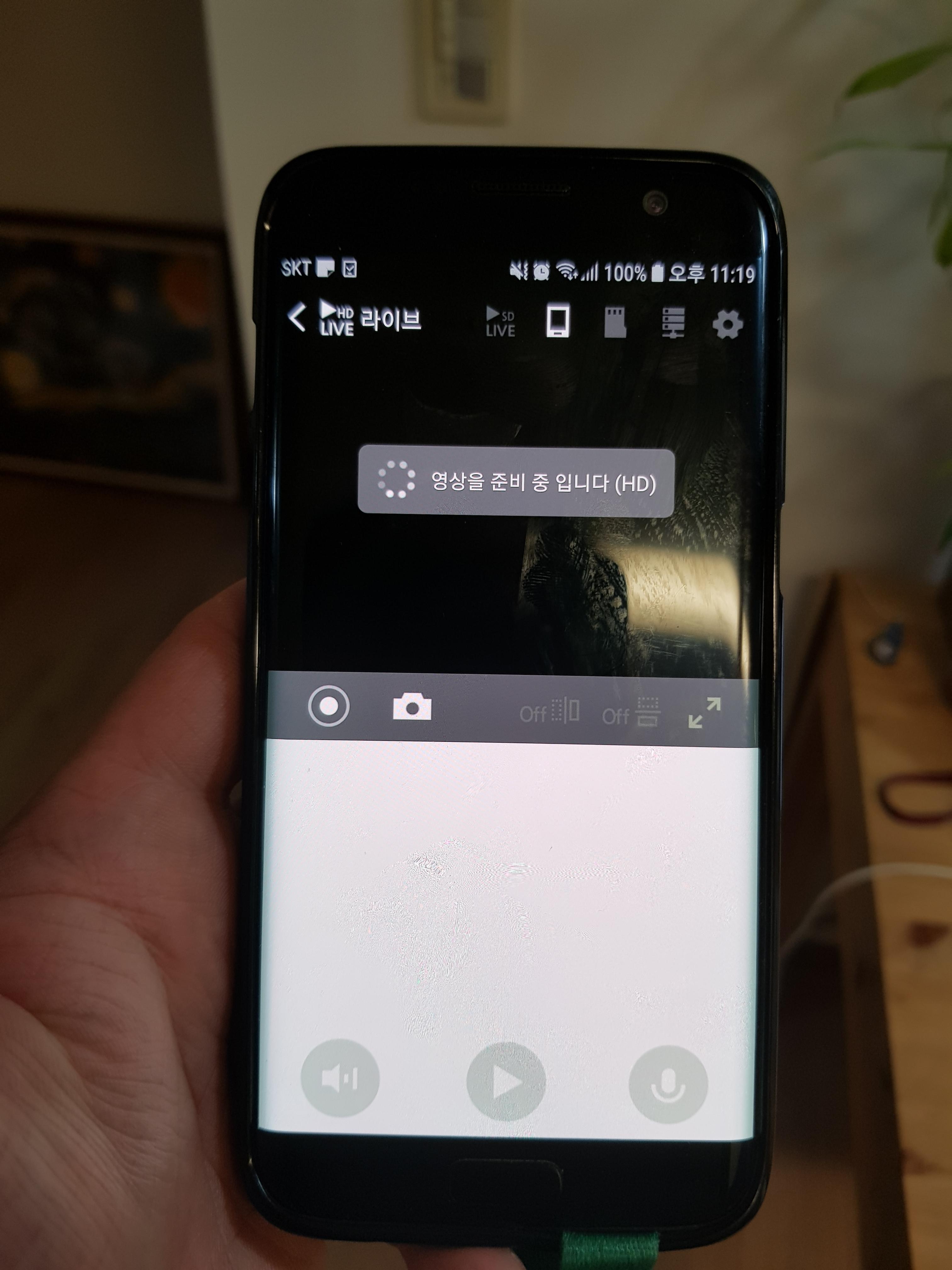 앱에 있는 녹음 버튼을 누르고 음성을 녹음하면 IP CAM의 스피커로 음성이 전달이 됩니다.ㅎㅎ