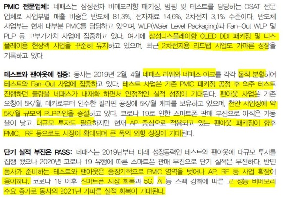 작년 DB투자증권 어규진님 리포트에서 네패스에 대한 전망을 해주셨구요.