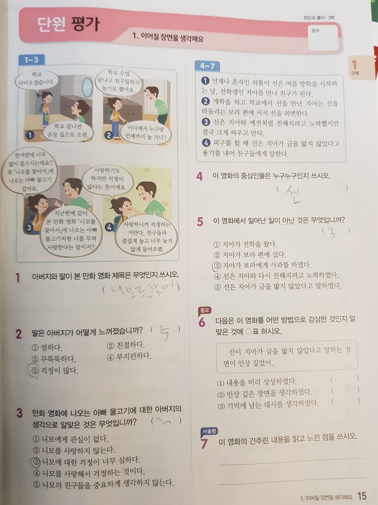 그리고 단원정리와 단원평가를 풀면서 배운 내용을 마무리 합니다.