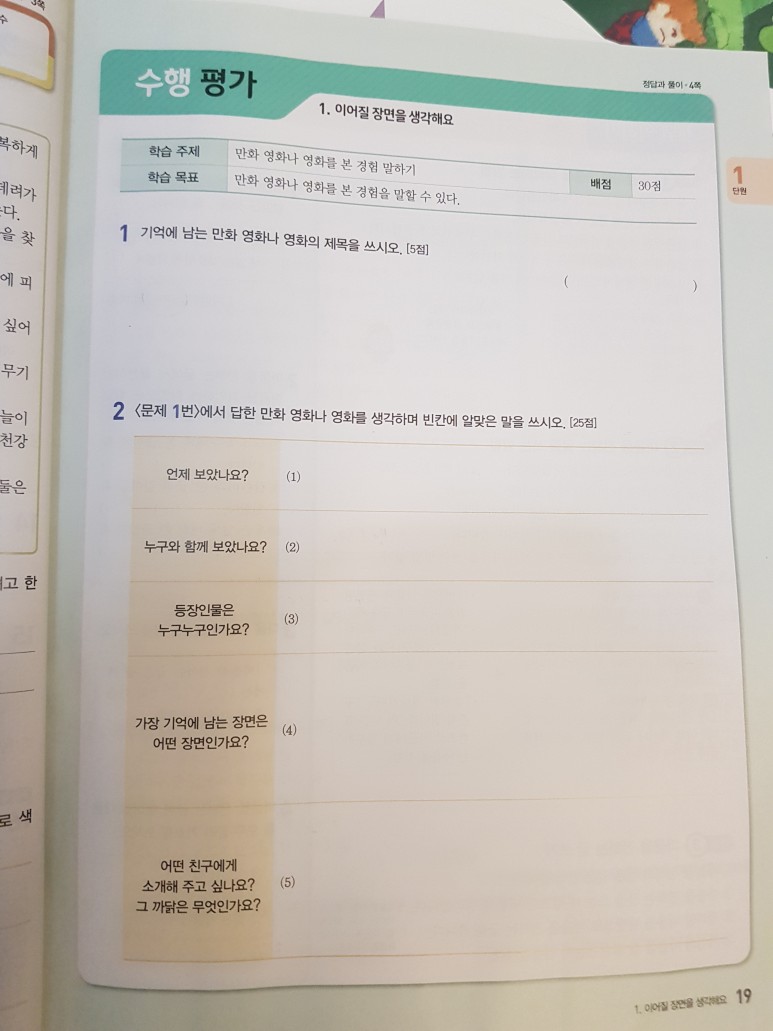 서술형 평가로 자신을 생각을 정리하고 쓸 수 있는 문제를 제공합니다..
