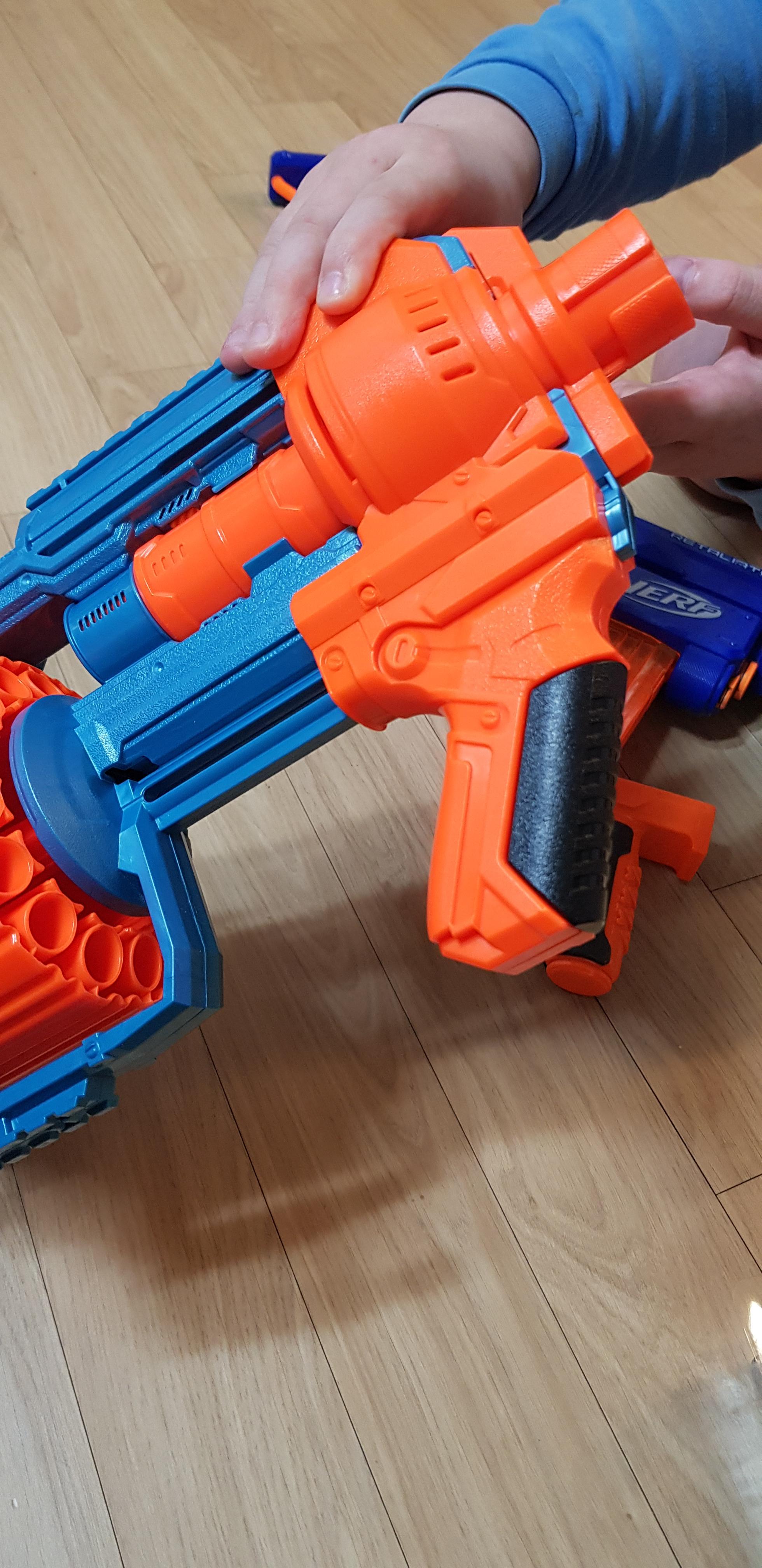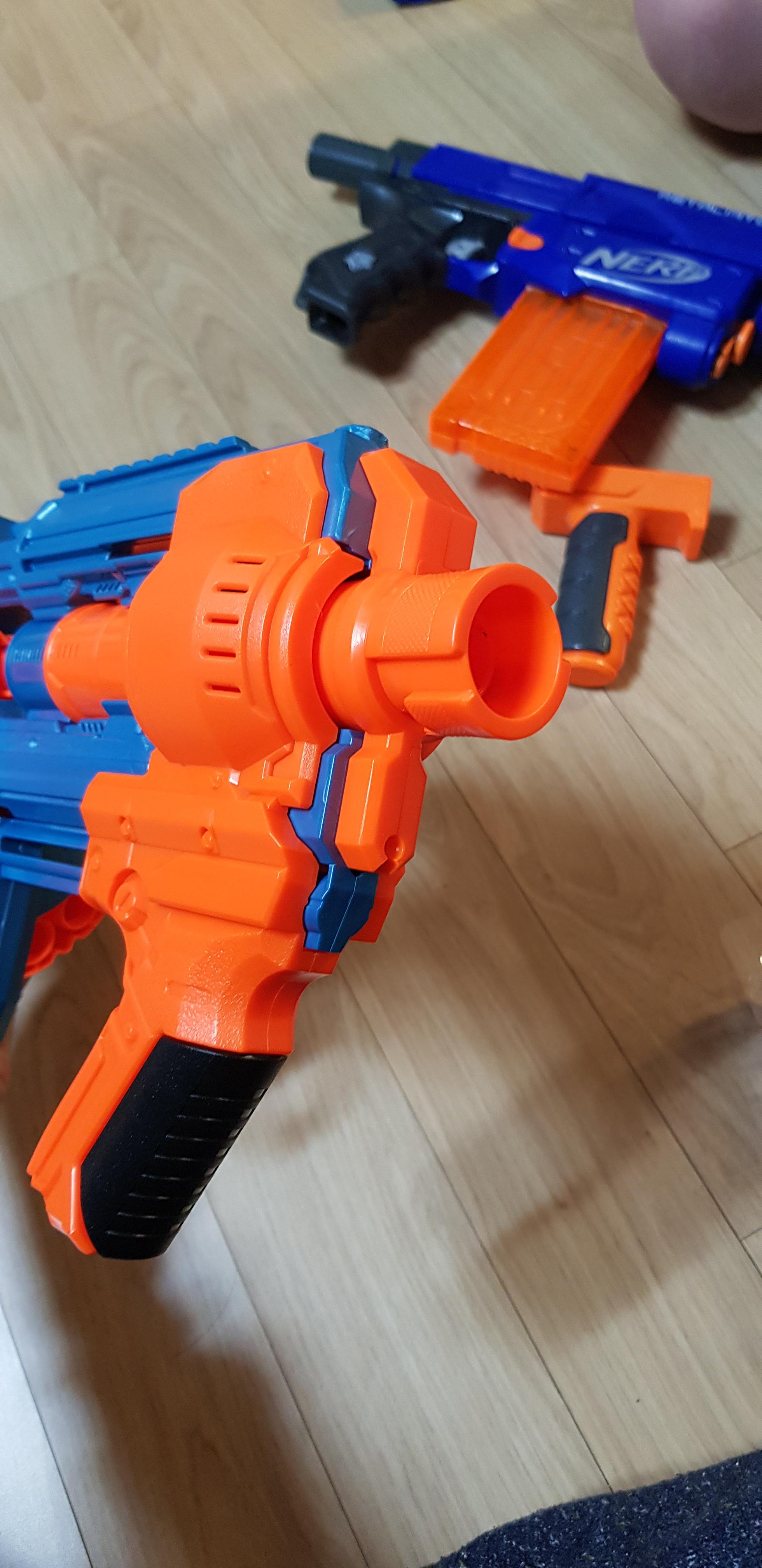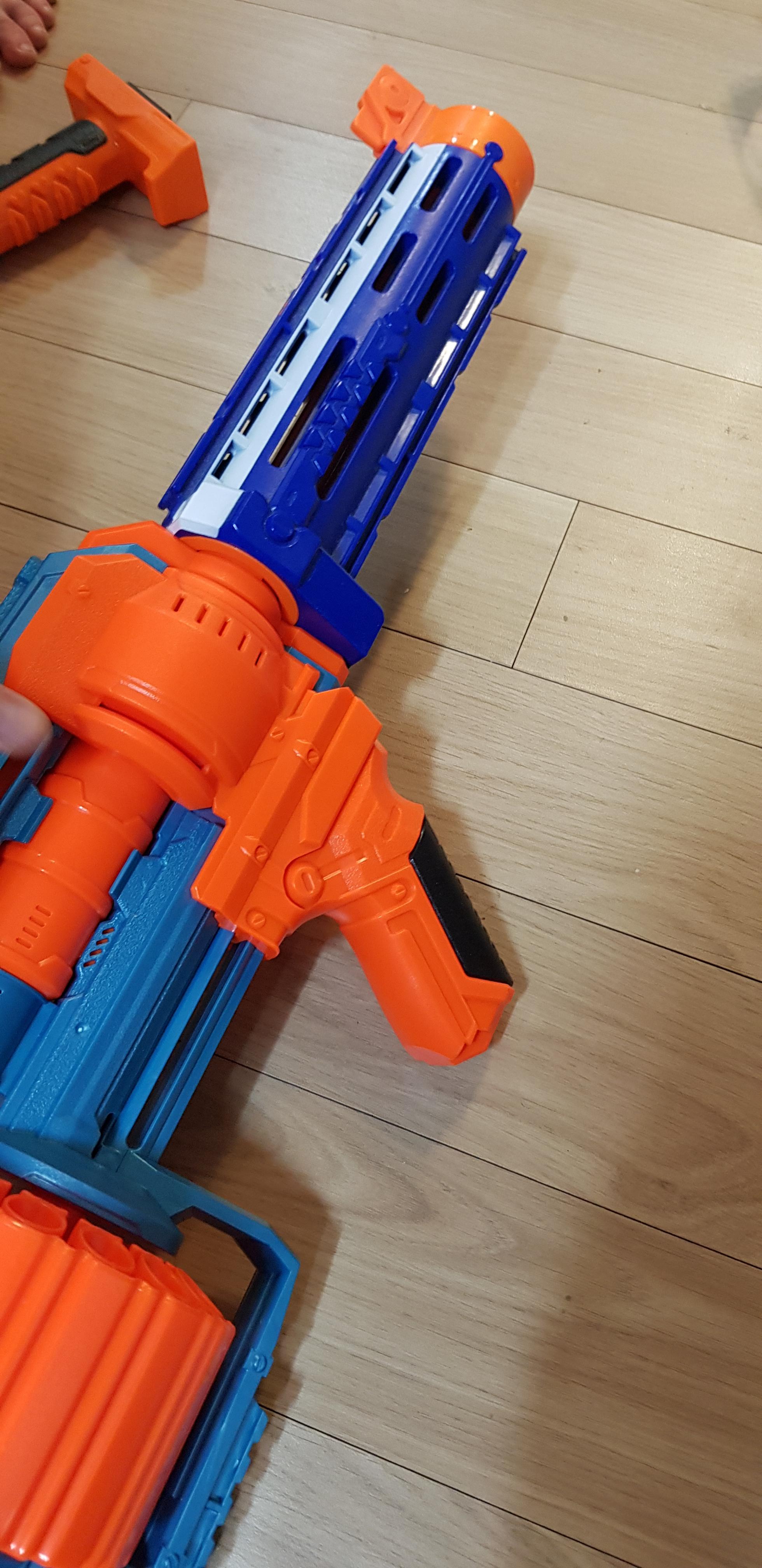 너프 엘리트 리텔리에이터 총열부분을 연결한 모습입니다.