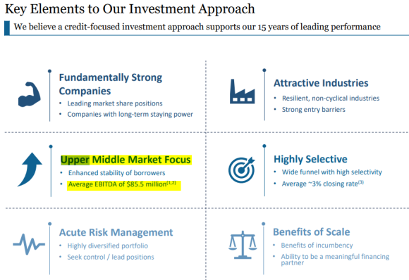 아레스 캐피털은 middle market중 Middle MM과 Upper MM에 걸쳐 있고 Upper MM에 중점을 두고 있습니다.