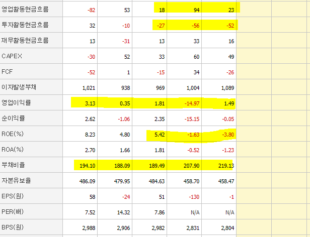 영업활동현금흐름은 줄어들고 투자는 계속 하고, 회사에 돈은 쌓이지 않고 있는 것 같습니다.