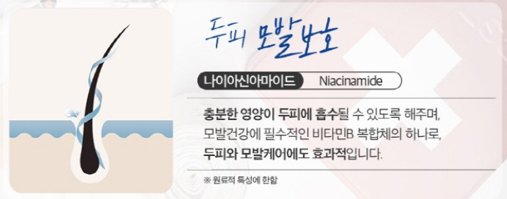 보통 비티민B가 두피와 모발케어에 효과적이라 탈모샴푸에 주성분으로 사용됩니다.