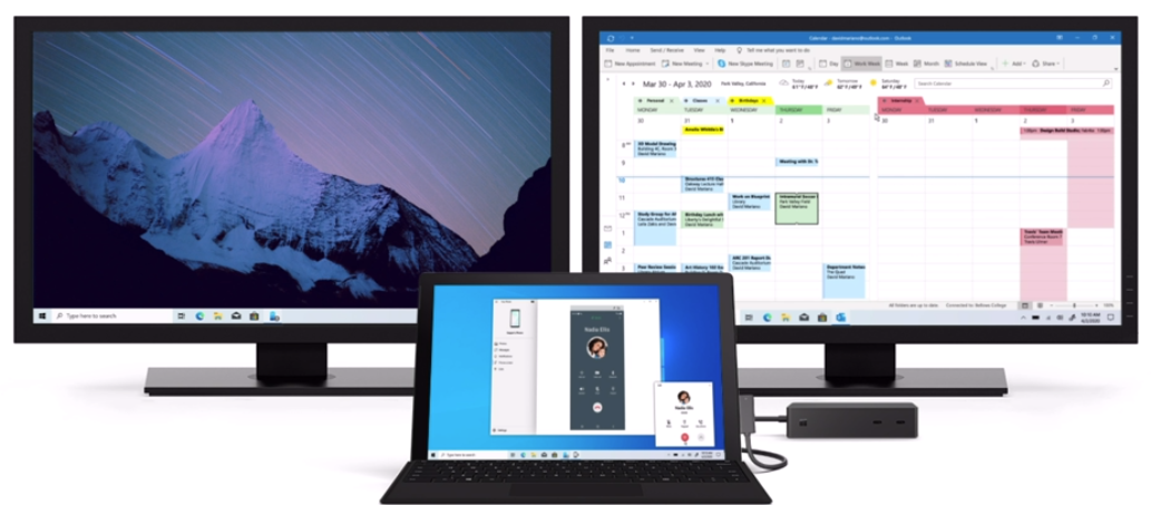 또한 Surface Dock 2를 사용해 여러 모니터와 액세서리에 연결하면 작업 영역을 원하는 방식으로 꾸밀 수 있습니다.