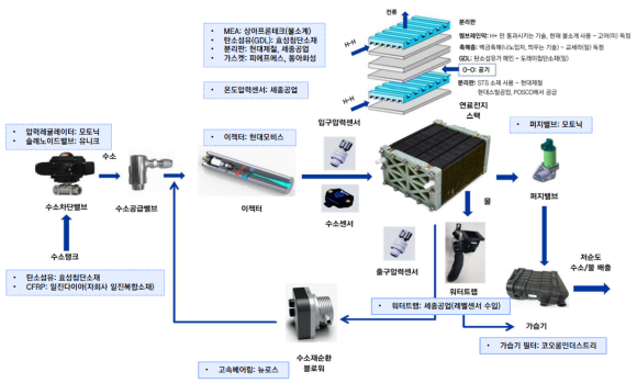 수소연료전지 스택은 수소차 생산비의 40%에 해당하는 가장 중요한 부품입니다.