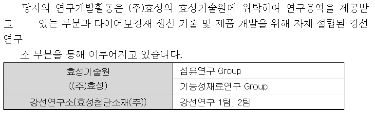 연구개발은 효성기술원에 위탁하여 연구용역을 제공받네요.