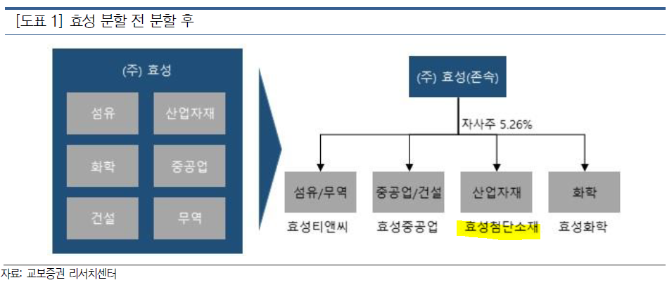 효성에서 산업자재 부문이 효성첨단소재 인적분할하여 2018년 7월에 유가증권시장에 상장되어 매매가 시작되었습니다.