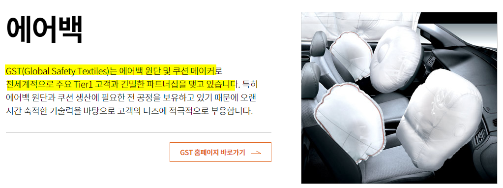 매출비중은 타이어보강재 다음으로 에어백 원단이 가장 큽니다.
