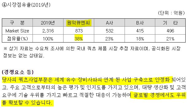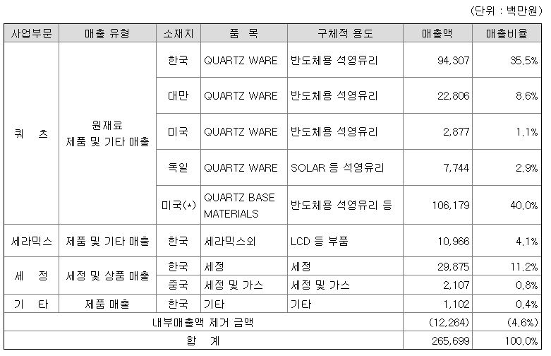 반도체 주요업체에 영업 및 판매를 하고 있는 것으로 보아 쿼츠 제품 경쟁력이 입증된 것 같은데..