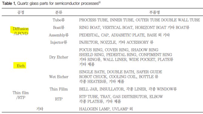 쿼츠웨어는 반도체 웨이퍼를 운반하거나 공정에 투입하는 도구로 사용된다. 10가지가 넘는 전체 반도체 제조공정에서 거의 모든 공정마다 쓰인다.