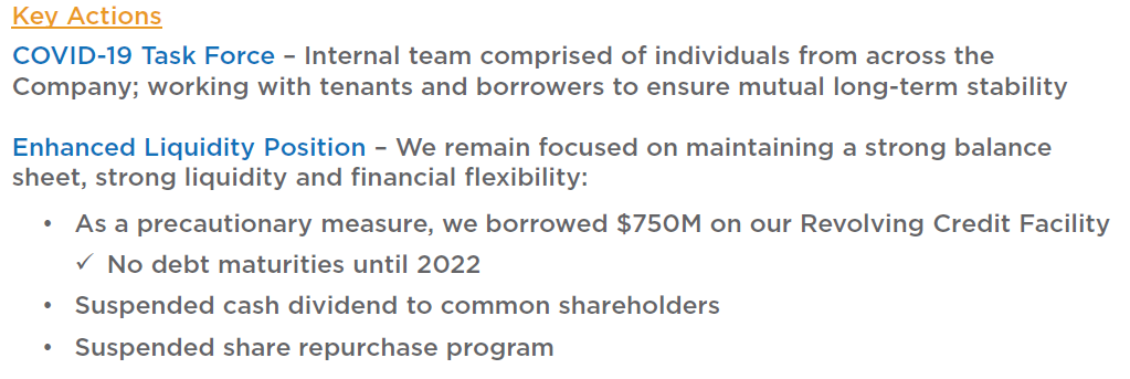 코로나로 인해 EPR프로퍼티스의 체험형 부동산들이 문을 닫으면서 매출이 급감하고 배당금 지급이 중단되었습니다.