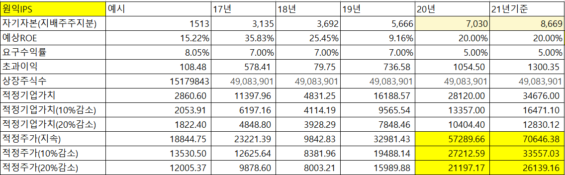 20년 컨센서스와 21년 컨센서스를 참고하여 S-RIM으로 계산해보면..