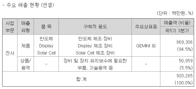 반도체. 디스플레이 전공정 장비가 매출액의 90%가 넘습니다.