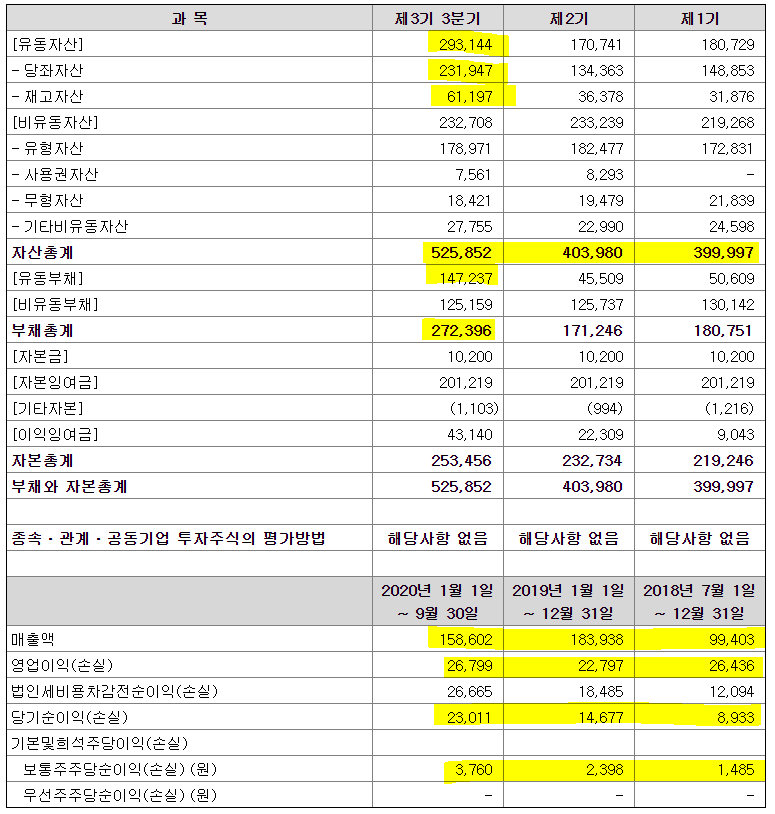 20년 3분기까지 매출액은 1586억, 영업이익 268억, 당기순이익 230억, EPS 3760원입니다.